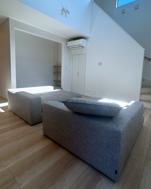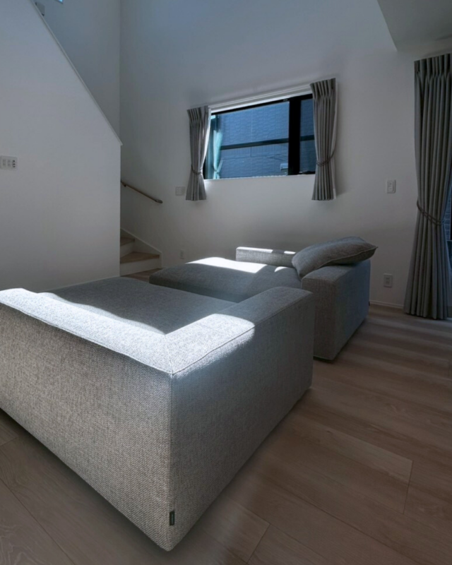 2台のカウチソファをゆったりと配置したレイアウトが、暮らしの特別感を一層高めています。